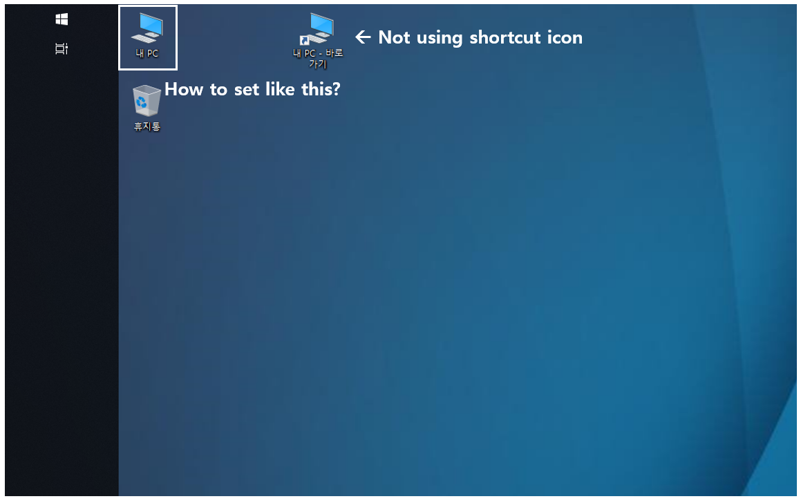 - 바로가기 아이콘을 만드는 방식이 아닌, 바탕화면 아이콘 추가 방법