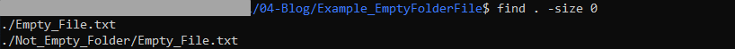 - 아래와 같이 find 명령어의 -size 옵션을 적용하여 파일 사이즈가 0인 파일을 찾을 수도 있습니다.