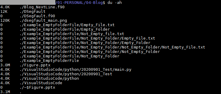 - 특정 경로의 폴더 및 파일의 용량을 확인하고 싶을 때...