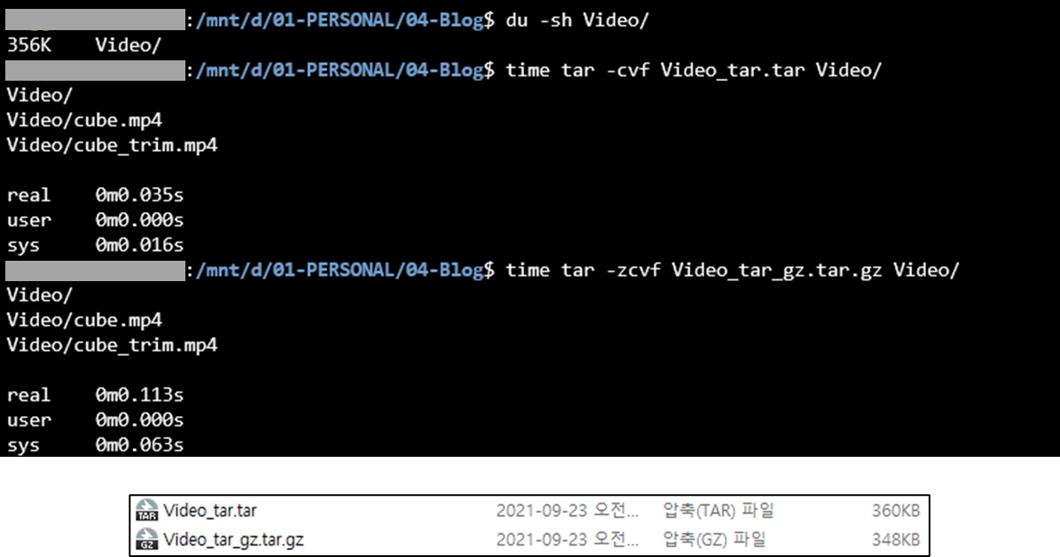 시간은 반대로 .tar.gz 가 2배 이상 오래걸렸습니다.