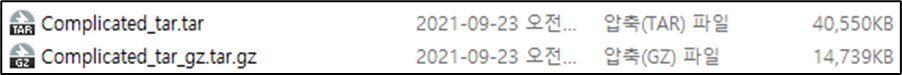 동일한 파일을 압축했는데 .tar.gz 의 용량이 2배 이상 작습니다.