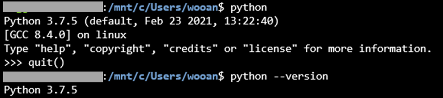 - 먼저 현재 python의 버전 확인은 다음 명령어를 통해 확인합니다.