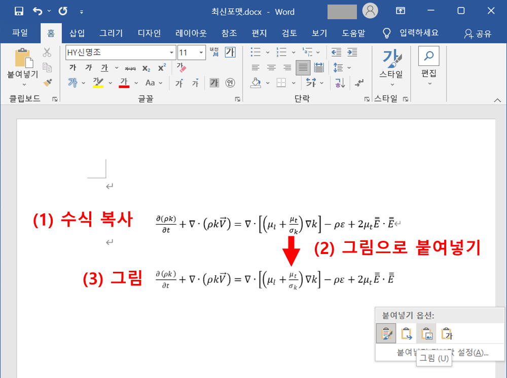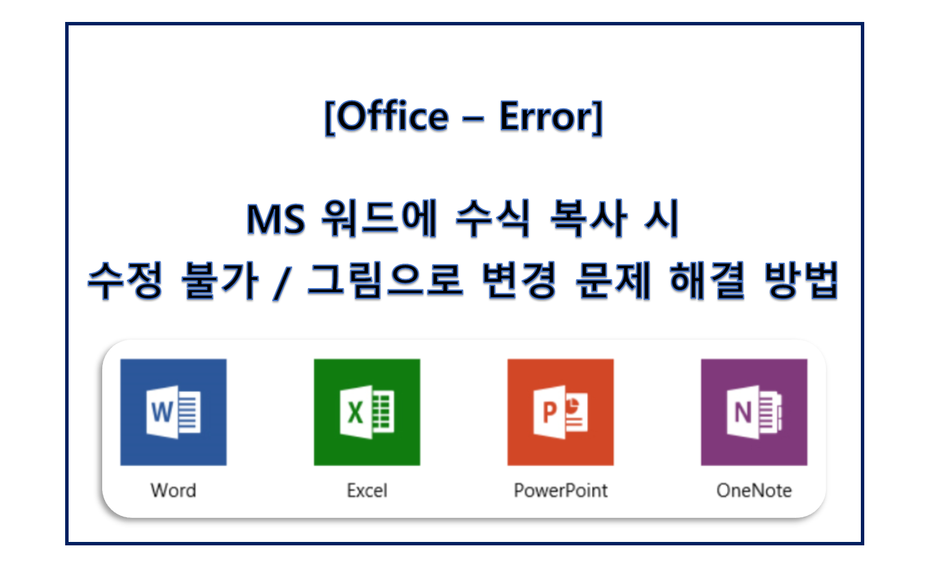 - 파워포인트 파일이나 다른 워드 파일에서 현재 작성 중인 워드 파일로 수식을 복사/붙여넣기 할 때, 기존 파일에서는 수식으로 인식되던 것이, 그림으로만 인식될 때가 있습니다.