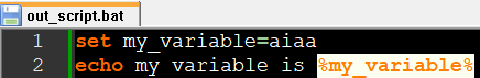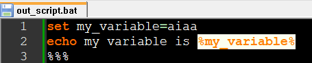 이 스크립트를 실행시키면, 아래와 %my_variable% 가 써지는게 아니라, aiaa로 셋업해 놓은 변수(사실 이것도 의도한 바가 아니긴 하죠)가 대신 들어가 있습니다.