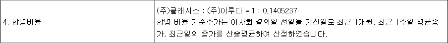 합병비율을 보고 이 합병의 유불리를 따져봅니다.