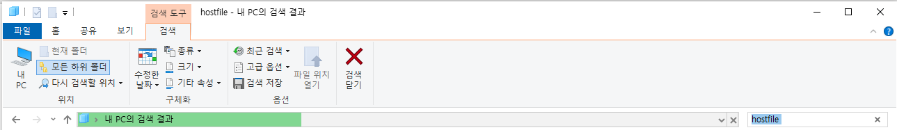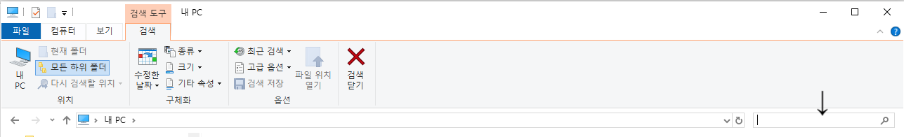 파일이나 폴더 검색 시, [내 PC - (우측 상단) 내 PC 검색]을 통해서 Window 10 기본 검색을 활용할 수도 있지만,