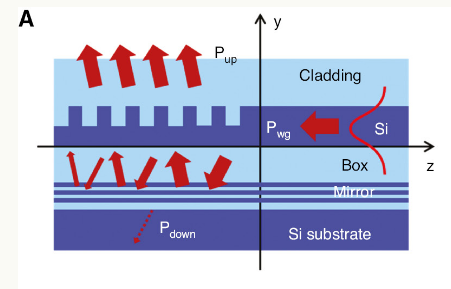 | 기본 Grating Coupler | 빛이 양방향으로 퍼져서 최대 50% 정도 효율 |
