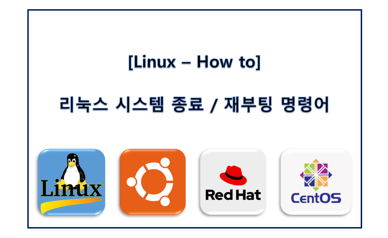 요약 - 시스템을 건드리기 위해선 root 권한이 필요합니다. $ su 명령어를 통해 관리자 권한을 획득한 뒤 아래 명령어를 실행하거나, 아래 명령어 앞에 # sudo 를 붙여 사용하시길 바랍니다. - 가장 단순하게 시스템을 종료하거나 재부팅 하고 싶다면 아래 명령어 중에서 하나 골라 사용하시면 되겠습니다. 동작 명령어 시스템 종료 shutdown -h now poweroff init 0 halt 시스템 재부팅 shutdown -r now reboot init 6 - 특정 시점에 시스템을 종료하거나 재부팅하고 싶다면 아래 shutdown 명령어 부분을 참고해주세요. 세부 사항 - 먼저, 재부팅이나 시스템 종료는 명령어 사용 후 즉각적으로 수행되므로, 정말 시스템이 종료되어도 무방한지 다시 한 번 확인해 ..